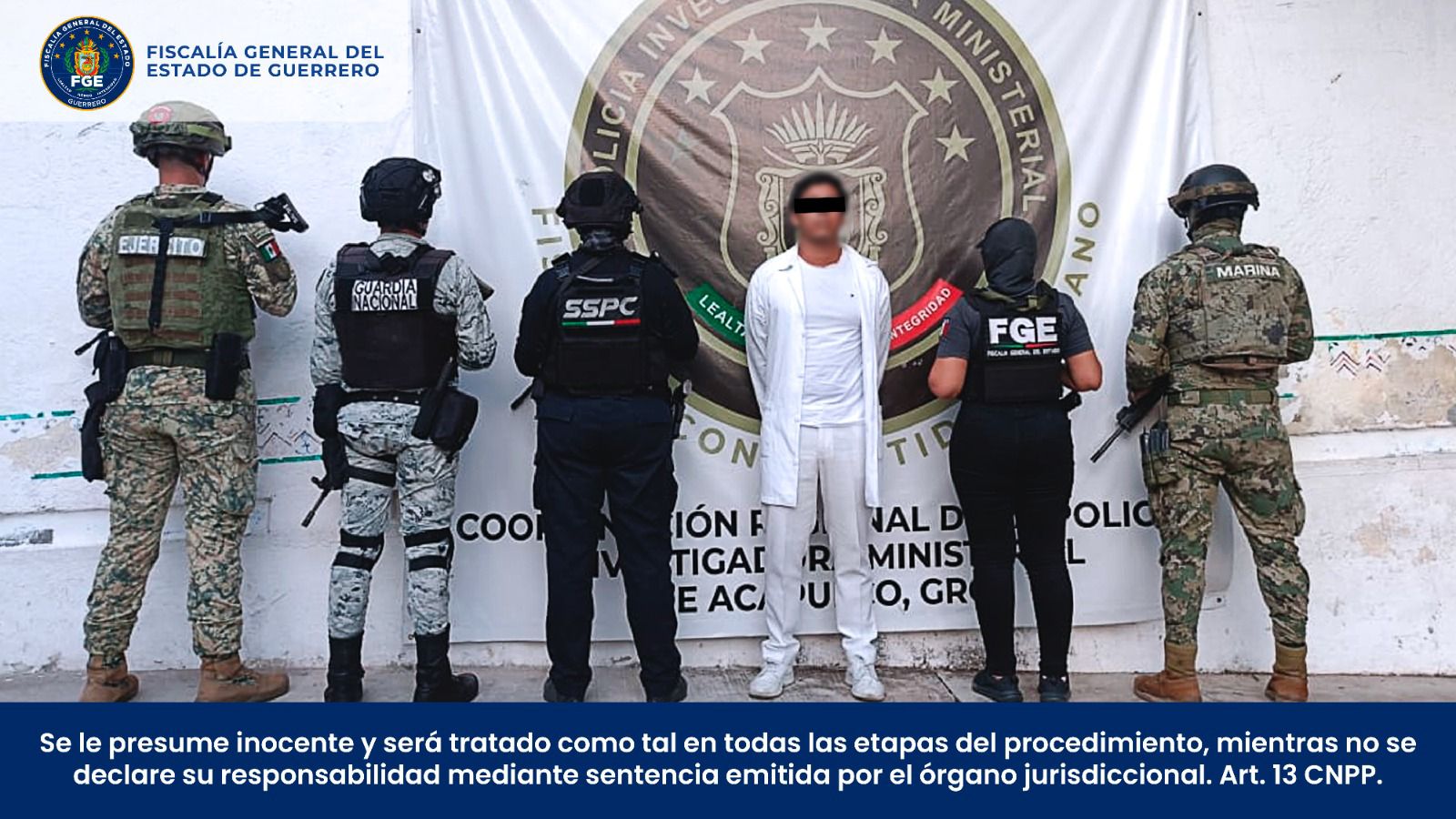 La Fiscalía General del Estado de Guerrero (FGE), en coordinación con la Secretaría de la Defensa Nacional (Sedena), Guardia Nacional (GN), Secretaría de Marina (Semar) y la Secretaría de Seguridad y Protección Ciudadana (SSPC), cumplimentó una orden de aprehensión en contra de Alan “N”, acusado de violación equiparada con violencia y violación agravada en perjuicio de una víctima de identidad reservada, en hechos ocurridos en Acapulco de Juárez.