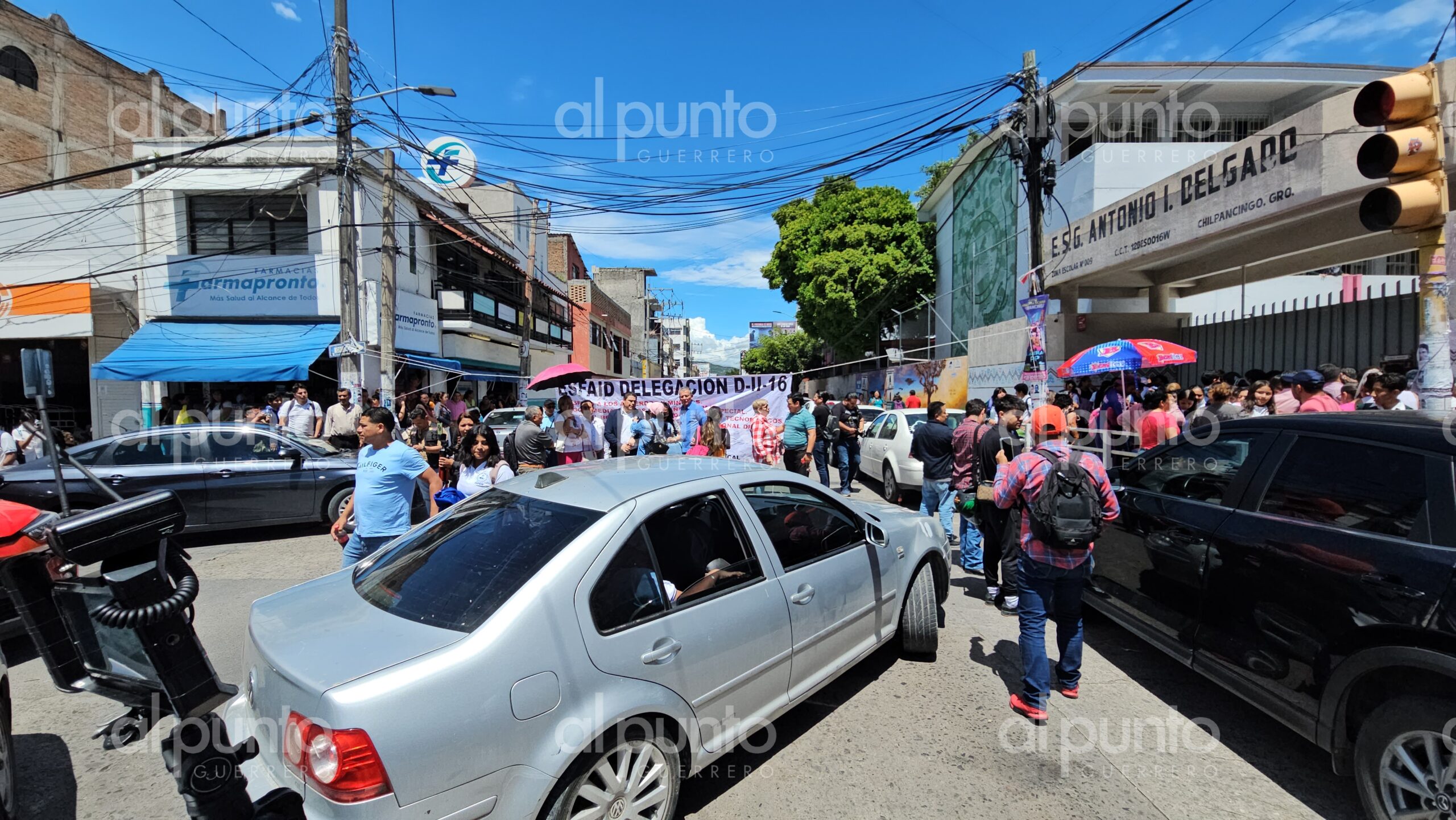 Un grupo de docentes afiliados al Sindicato Nacional de Trabajadores de la Educación (SNTE) bloqueó este miércoles la avenida Vicente Guerrero, a la altura de la calle Eucaria Apreza, para protestar contra la destitución del director de la Escuela Secundaria General Antonio I. Delgado, Joaquín Lugo Millán.